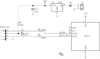3. PIR 的 VDD 對地接 100NF 的電容,并盡量與 PIR 的 VDD 靠近。